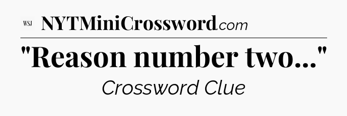 The clue “”Reason number two…”” most recently appeared in a WSJ Crossword on September 28, 2023.