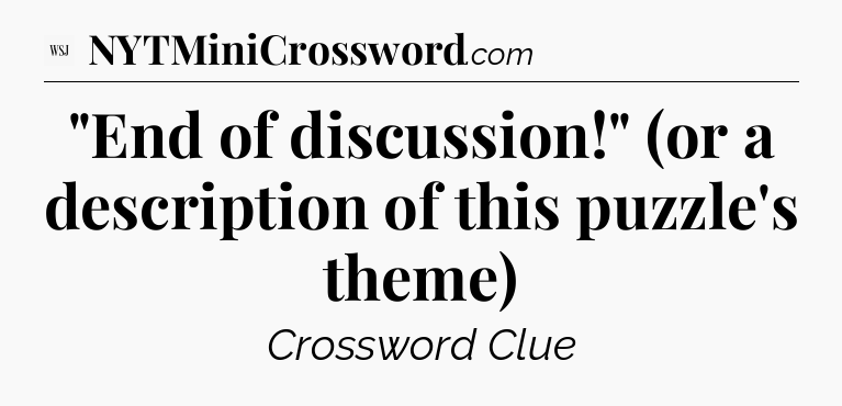 The clue “”End of discussion!” (or a description of this puzzle’s theme)” most recently appeared in a WSJ Crossword on September 6, 2025.