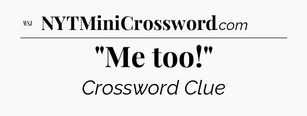 The clue “”Me too!”” most recently appeared in a WSJ Crossword on September 6, 2025.