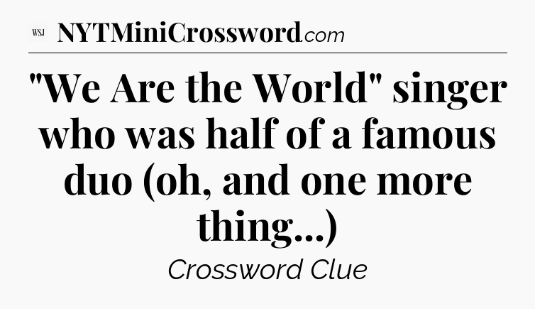 The clue “”We Are the World” singer who was half of a famous duo (oh, and one more thing…)” most recently appeared in a WSJ Crossword on September 8, 2023.